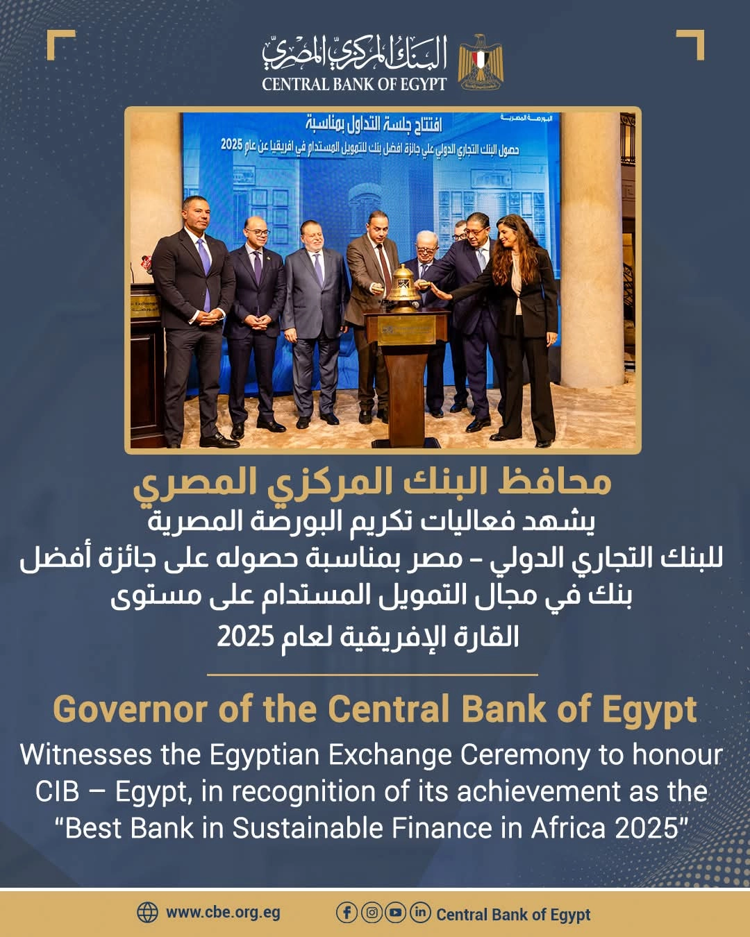 محافظ البنك المركزي يشهد فعاليات تكريم البورصة المصرية لـCIB