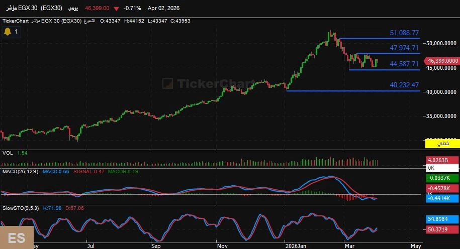 خبير: التوترات الجيوسياسية مازالت تلقي بظلالها على أداء “EGX 30″ و”السبعيني” يقترب من مستويات الحسم