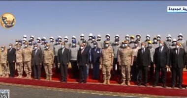 التقط الرئيس عبد الفتاح السيسي، صورة تذكارية، مع عدد من الوزراء والمسئولين، وذلك خلال تفقد بدء موسم حصاد القمح فى توشكى.