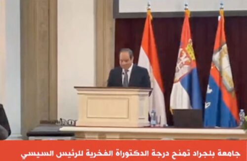 أعرب الرئيس عبدالفتاح السيسي عن سعادته وفخره لمنحه درجة الدكتوراه الفخرية من جامعة بلجراد أعرق وأقدم جامعات صربيا التى يرجع تاريخها إلى ١٠٠ عام.