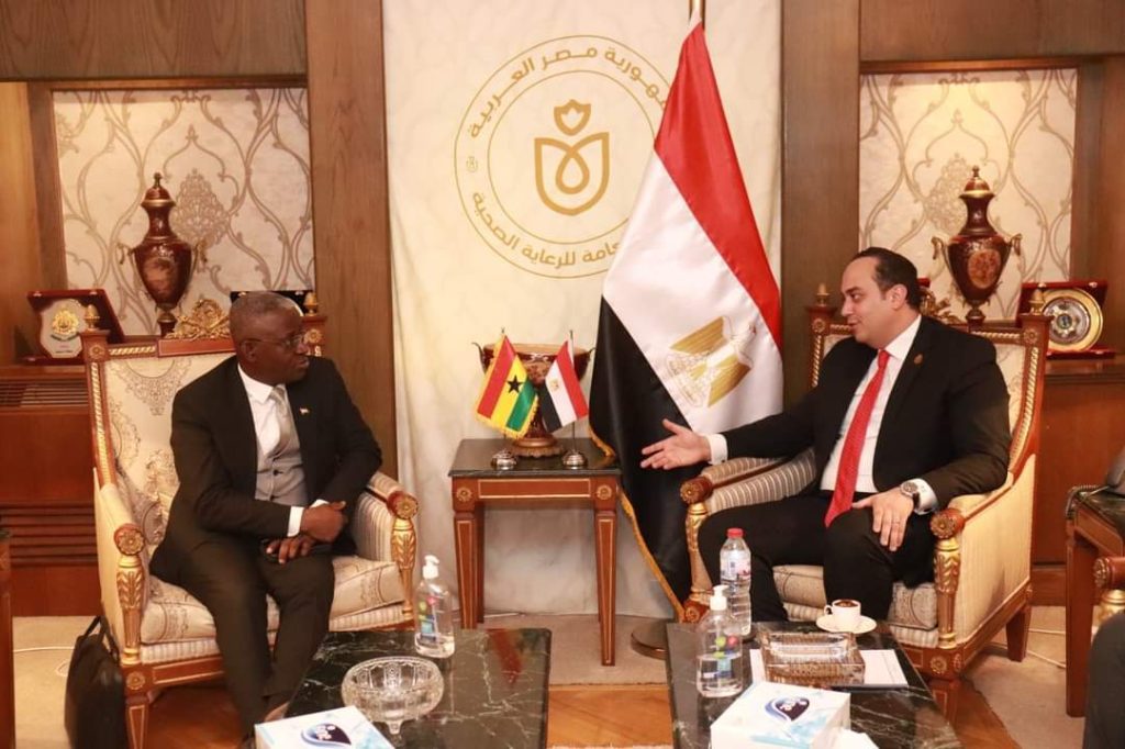 استقبل الدكتور أحمد السبكي، رئيس الهيئة العامة للرعاية الصحية، مساعد وزير الصحة والسكان، المشرف العام على مشروع التأمين الصحي الشامل، السفير عبيد بواما أكوا، سفير دولة غانا في مصر، لبحث وتعزيز سبل التعاون بين البلدين في قطاع الرعاية الصحية، وذلك بمقر الهيئة في مدينة نصر.