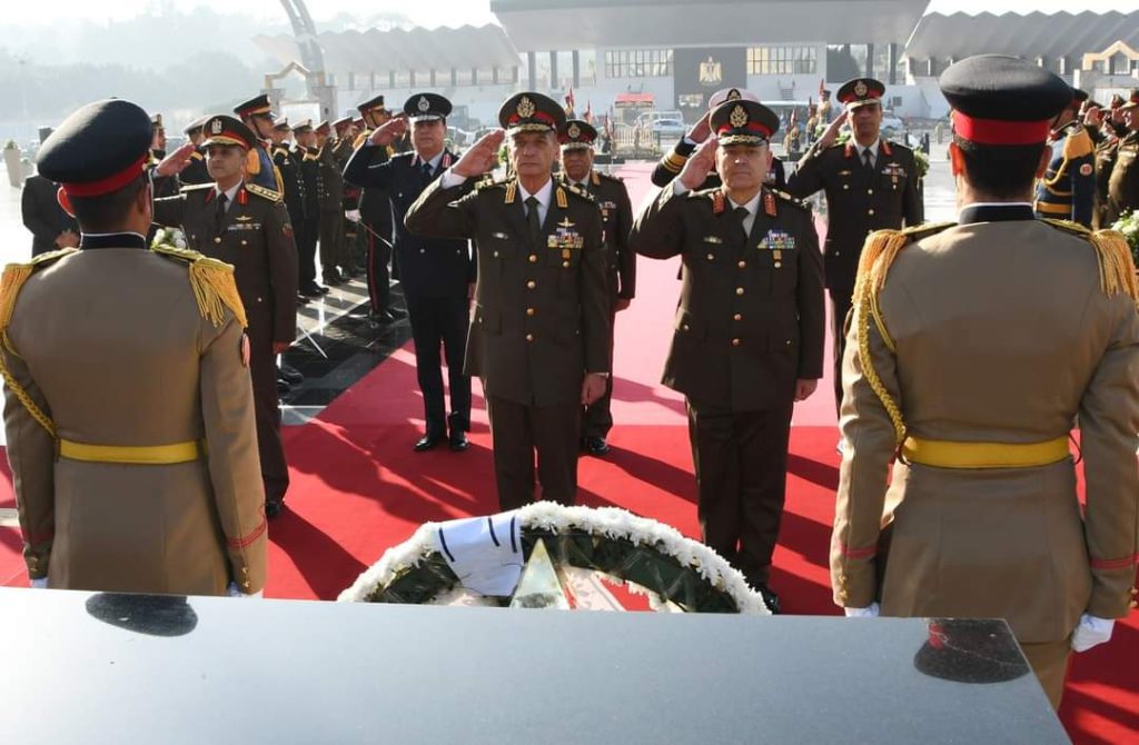 وقام القائد العام للقوات المسلحة يرافقه الفريق / أسامة عسكر رئيس أركان حرب القوات المسلحة وقادة الأفرع الرئيسية بوضع باقة من الزهور على النصب التذكارى للجندى المجهول ، كما عزفت الموسيقات العسكرية سلام الشهيد ، ثم توجه لقراءة الفاتحة على قبر الزعيم الراحل محمد أنور السادات .