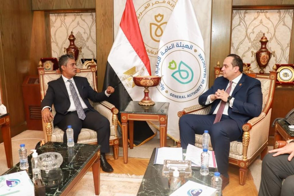 استقبل الدكتور أحمد السبكي، رئيس الهيئة العامة للرعاية الصحية، مساعد وزير الصحة والسكان، المشرف العام على مشروع التأمين الصحي الشامل، الدكتور نهيان هلال، رئيس مجلس إدارة مجموعة هوليستيك الإماراتية المتخصصة في الطب المهني، وذلك لبحث سبل التعاون المشترك.