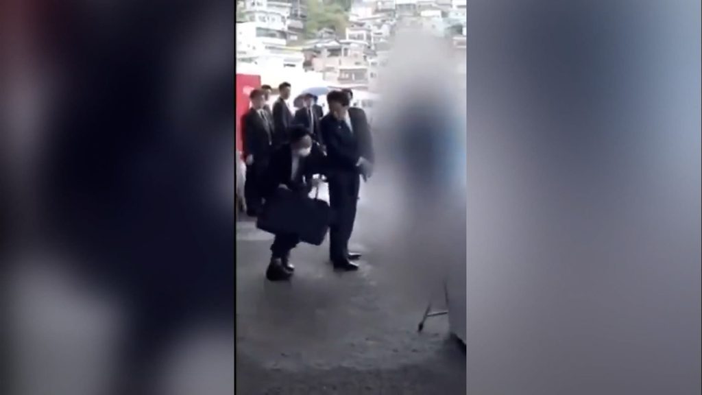 يُظهر مقطع فيديو ردة فعل حارس شخصي لرئيس وزراء اليابان، فوميو كيشيدا، عندما لاحظ أسطوانة فضية يبدو أنها ألقيت في اتجاه كيشيدا في حدث انتخابي في مدينة واكاياما.