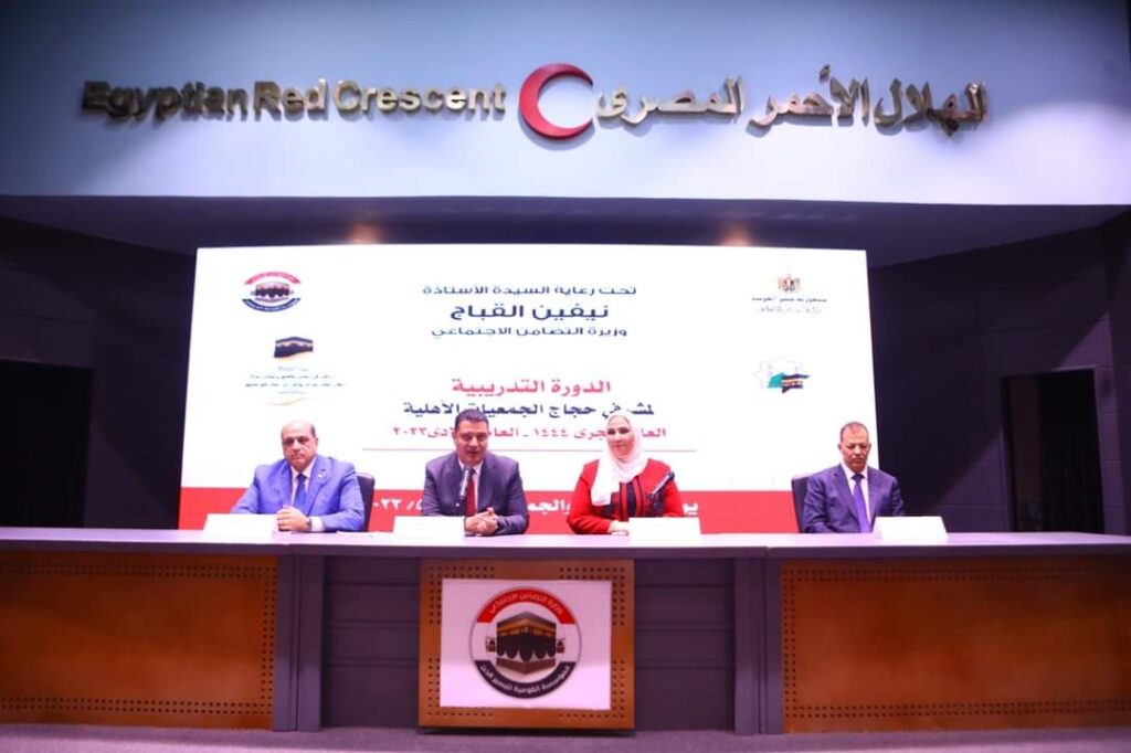 في إطار الاستعداد لموسم حج 1444ه – 2023 م، حرصت السيدة نيفين القباج وزيرة التضامن الاجتماعي على متابعة البرنامج التدريبي المعد لمشرفي حج الجمعيات الأهلية، والذي أعدته المؤسسة القومية لتيسير الحج والعمرة على مدار يومين، حيث تم تدريب المشرفين على كافة الأمور المتعلقة برحلة الحج، سواء المهارات الإشرافية والتعليمات الطبية وغيرها من الأمور المتعلقة برحلة الحج.