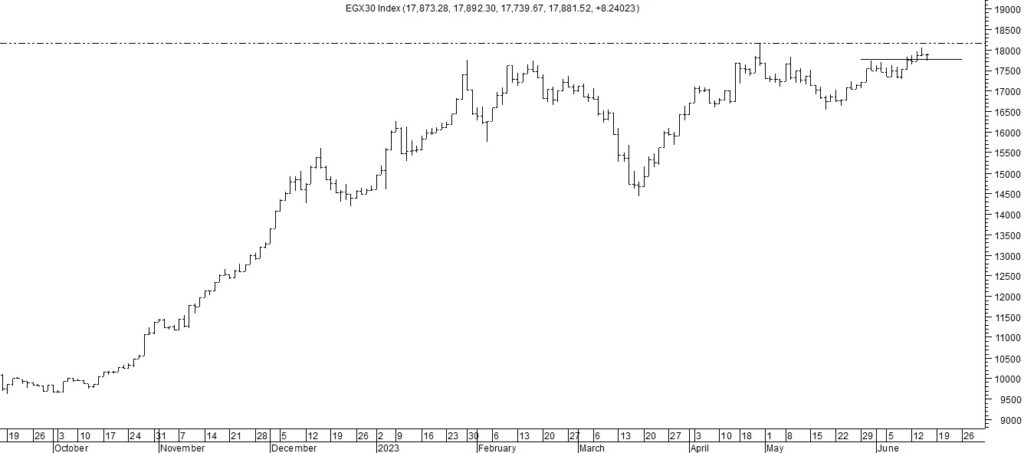 قال محمد اسماعيل مديرادارة التحليل الفني فى شركة “سيجما” لتداول الاوراق المالية، فى تحليله لآداء مؤشرات السوق وبخاصة مؤشر السوق الرئيسي”EGX 30″، إن المؤشر الثلاثينى أنهى الاسبوع الجارى ارتفاع كما أنه اقترب من القمة السابقة عند مستوى 18100 نقطة والذى بدأت بالقرب منه عمليات جنى وهذا أمرطبيعى أرباح لإعتباره مقاومة قويه .