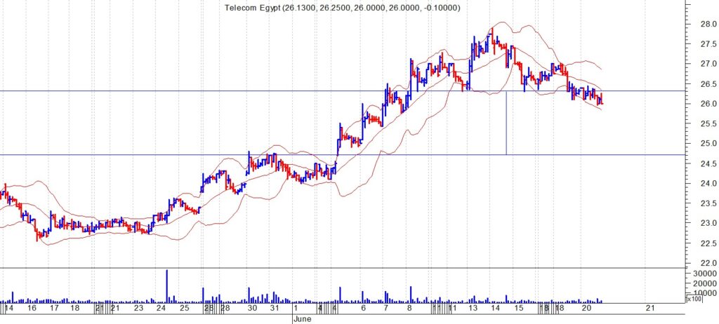 وقال رئيس قسم البحوث الفنية فى “أونست” للأوراق المالية حازم عثمان، إن سهم المصرية للاتصالات اغلق الامس الثلاثاء عند مستوى 26 بعدما حققت نموذج الراس والكتفين على النصف ساعة وباختراق مستوى خط العنق عند 26.3 اكدت النموذج الذي يستهدف 24.5 جنية على الاقل خلال هذا الاسبوع بمشيئة الله