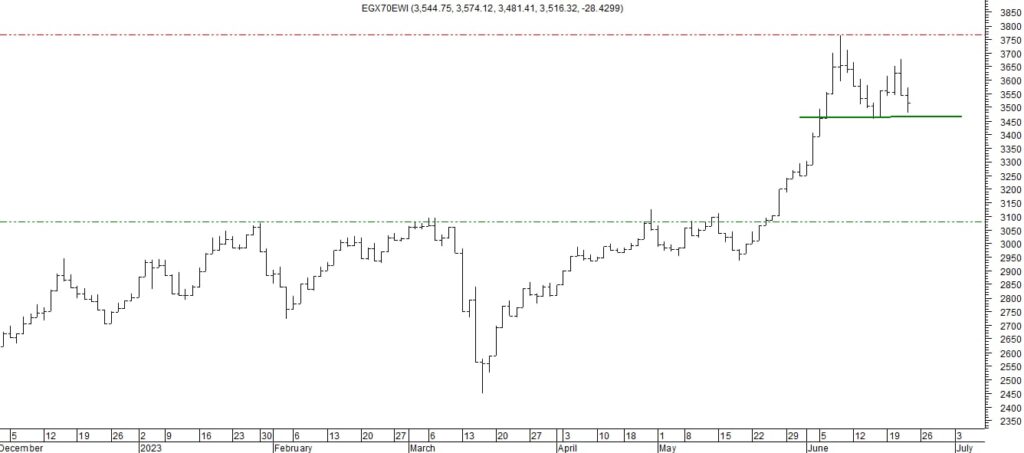 قال محمد اسماعيل مدير إدارة التحليل الفنى بشركة سيجما لتداول الأوراق المالية، فى تحليله لآداء مؤشر “ايجي اكس 70” للاسهم الصغيرة والمتوسطة، يتحرك المؤشر فى اتجاه عرضى بين مستويات 3450 نقطة ومستويات 3650 نقطة حيث إنه تراجع من مستويات 3650 نقطة كما أن المؤشر يختبر حاليا دعم مهم عند مستويات 3450 نقطة وهو مستوى ايقاف خسائر متوقع عدم كسره وأن يظهر بالقرب منه قوى شرائية .