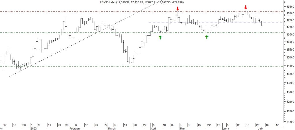 قال محمد اسماعيل مدير إدارة التحليل الفنى بشركة سيجما لتداول الاوراق الماليه فى تحليله الفني لآداء مؤشر السوق الرئيسي “ايجي اكس 30″، مازال المؤشر يتداول في اتجاه عرضي على المدى القصير، وقد شهد انخفاض من الحد العلوي عند منطقة المقاومة القوية 18,150 نقطة، واستمر في الانخفاض ليغلق الأسبوع اسفل مستوى الدعم القوي 17,300 نقطة.