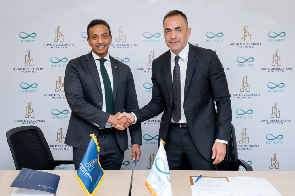 وقع عقد الشراكة، بمقر شركة المطورون العرب القابضة بمصر الجديدة، الدكتور أيمن بن خليفة، الرئيس التنفيذي والعضو المنتدب لشركة المطورون العرب القابضة، والسيد/ شمس عبدالغفارـ العضو المنتدب لشركة إنفنيتي إي للتوريد وشحن السيارات، بحضور السيد/ جمال فتح الله رئيس مجلس إدارة شركة المطورون العرب القابضة.