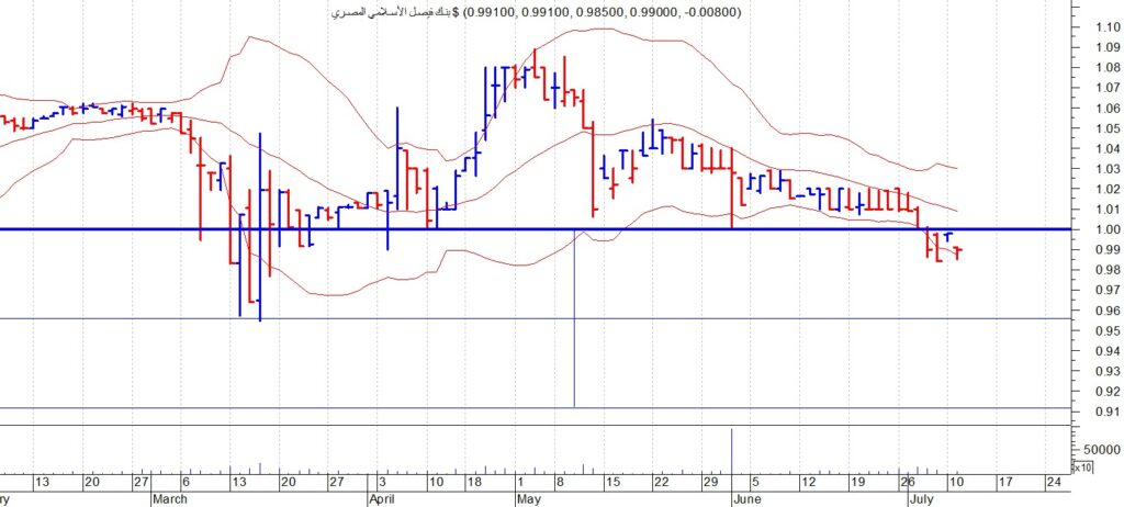 قال حازم عثمان رئيس قسم البحوث والتحليل الفنى فى شركة “أونست” لتداول الاوراق المالية فى تحليله الفني لأداء سهم “بنك فيصل الاسلامي بالدولار”، اغلق سهم بنك فيصل الدولاري عند مستوى 0.99 سنت ويقف تحت مستوى المقاومة الهام عند مستوى 1 دولار نتوقع ان يتراجع الى مستويات 95 سنت ثم 90 سنت ننصح بالبيع قرب المقاومة واعادة الشراء قرب الدعوم .