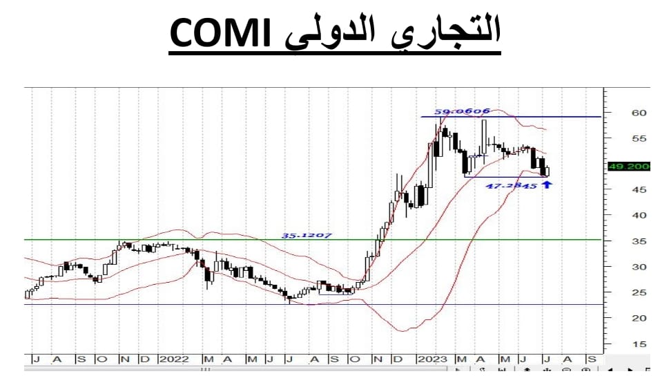 علي ان يكون السيناريو البديل في حالة استطاعت القوي البيعية التغلب علي نظيرتها الشرائية عن طريق كسر مستوي الدعم الرئيسي (46.5-47) لاسفل جنيه .