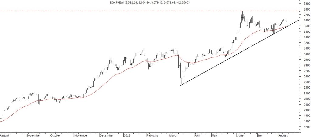 قال محمد اسماعيل، رئيس قسم التحليل الفني فى شركة “سيجما” لتداول الاوراق المالية فى تحليله الفني لمؤشر الاسهم الصغيرة والمتوسطة “ايجي اكس 70″، أنه وبالرغم من الانخفاض الذي شهده المؤشر بنهاية تداولات الاسبوع إلا انه مازال يتداول أعلى قمته السابقة عند مستوى 3,540 نقطة، والتي نتوقع ان توقف الانخفاض التصحيحي الحالي، وان تظهر حولها القوة الشرائية مرة أخرى، حيث الاغلاق الاسبوعي أعلى هذا المستوى إشارة على انتهاء الحركة التصحيحية السابقة، ومعاودة التحرك لأعلى ليستهدف منطقة المقاومة 3,700 نقطة، وستظل رؤيتنا تميل صوب الجانب الإيجابي للمؤشر طالما يتداول أعلى مستوى الدعم الهام 3,500 نقطة .