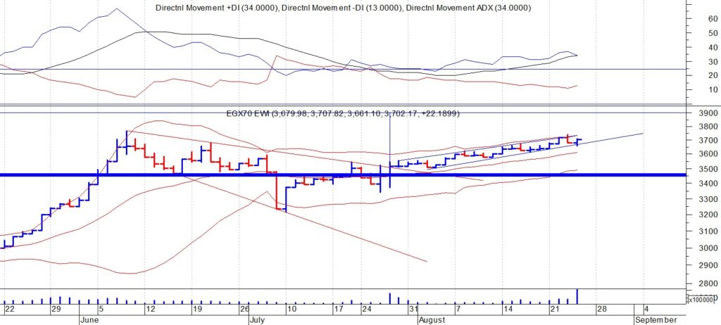 و على الجانب الاخر نتوقع ان يعمل مستوى 3600 نقطه دعما للمؤشر في حاله حدوث اي انخفاضات على المدى القصير.