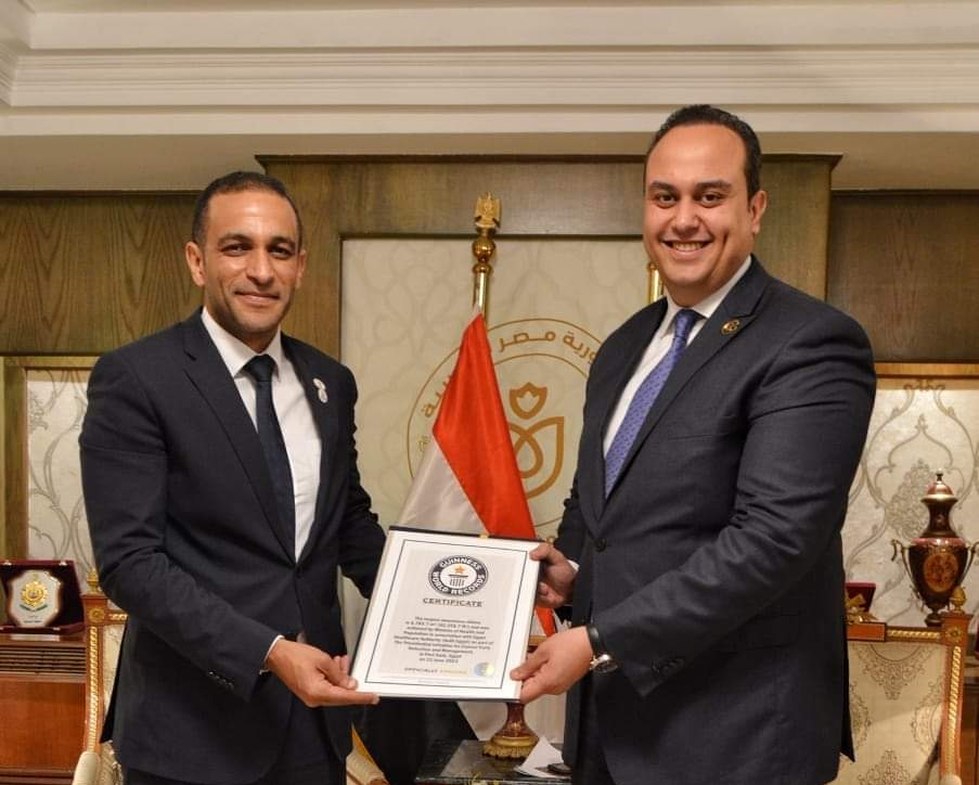وفي بداية اللقاء، تسلم الدكتور أحمد السبكي، نسخة من شهادة موسوعة جينيس للأرقام القياسية لتسجيل أكبر علامة للتوعية بالسرطان في العالم بمصر، والتي وصلت مساحتها لـ 5783,7 مترًا مربعًا تحت اسم مبادرة رئيس الجمهورية “الكشف المبكر عن الأورام السرطانية” لدعم خدمات صحة المرأة، والتي سلمها إليه الدكتور محمد العزب، رئيس الجمعية المصرية لمنظار عنق الرحم، تقديرًا لجهود هيئة الرعاية الصحية ومشاركتها في تنفيذ المبادرة الرئاسية بمحافظة بورسعيد، ودورها الكبير في إنجاح تسجيل العلامة بموسوعة جينيس.