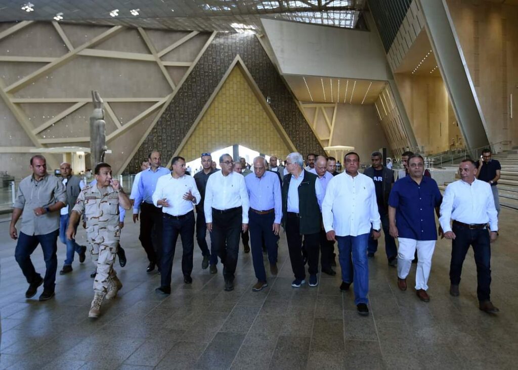 بدأ الدكتور مصطفى مدبولي، رئيس مجلس الوزراء، صباح اليوم، جولة تفقدية؛ لمتابعة سير العمل في المتحف المصري الكبير في ضوء التشغيل التجريبي للمتحف، وكذا الموقف التنفيذي الحالي ومستجدات الأعمال الجارية بالمنطقة المحيطة ومنطقة الأهرامات، ورافقه خلال الجولة كل من: الفريق مهندس/ كامل الوزير، وزير النقل، واللواء/ هشام آمنة، وزير التنمية المحلية، والدكتور محمد أيمن عاشور، وزير التعليم العالي والبحث العلمي، والسيد/ أحمد عيسى، وزير السياحة والآثار، واللواء/ أحمد راشد، محافظ الجيزة، واللواء / خالد عبد العال، محافظ القاهرة، واللواء/ عاطف مفتاح، المشرف العام على مشروع المتحف المصري الكبير، والدكتور مصطفي وزيري، الأمين العام للمجلس الأعلى للآثار، والدكتور الطيب عباس، مساعد وزير السياحة للشئون الأثرية بالمتحف المصري الكبير، وعدد من المسئولين المعنيين بالوزارات والمحافظات والجهات المختصة، ومسئولي الشركات المنفذة.