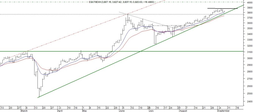 قال محمد اسماعيل رئيس قسم التحليل الفني فى شركة “سيجما” لتداول الاوراق المالية، فى تحليله الفني لآداء مؤشر “ايجي اكس 70” للاسهم الصغيرة والمتوسطة، تحرك المؤشر السبعيني في اتجاه صاعد وقد شهد ارتفاع جيد حقق به مستويات تاريخية جديدة حيث قد وصل عند مستوى المقاومة 3,870 نقطة والذي أوقف الارتفاع ويتداول أدناه في نطاق عرضي تصحيحي، وسوف ينتهي مع اختراق مستوى المقاومة المذكور لأعلى، والذي أعلاه سوف يدفع المؤشر لمزيد من الارتفاع ليسجل مستويات تاريخية جديدة حول منطقة 4,000 نقطة، بينما يكمن الدعم عند منطقة 3,800 – 3,750 نقطة وستظل الرؤية الإيجابية قائمة طالما نتداول أعلى هذه المنطقة .