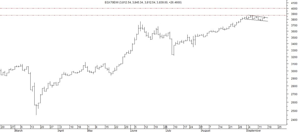 قال محمد اسماعيل رئيس قسم التحليل الفني لشركة “سيجما” لتداول الاوراق المالية فى تحليله الفني لمؤشر الاسهم الصغيرة والمتوسطة “ايجي اكس 70″، يتحرك المؤشر في اتجاه صاعد رئيسي، وقد شهد ارتفاع قوي وصل به عند مستوى المقاومة التاريخي 3,870 نقطة، والي أوقف الارتفاع ويتداول أدناه في نطاق عرضي تصحيحي، نتوقع بعده ان يكمل الارتفاع، وفي حال اختراق مستوى المقاومة المذكور لأعلى سوف يدفع المؤشر نحو منطقة 4,000 نقط ليسجل مستويات تاريخية جديدة، بينما يكمن الدعم الحالي للمؤشر حول منطقة 3,750 نقطة.