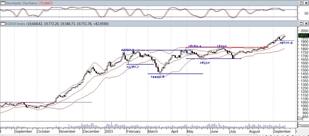 قال مصطفى رأفت رئيس قسم البحوث الفنية والتحليل الفني فى شركة “ميراج” لتداول الاوراق المالية فى تحليله الفني لآداء مؤشر السوق الرئيسي “ايجي اكس 30″، مازالت القوى الشرائية هى المسيطرة على أداء المؤشر بعد اختراقها مستويات 19000 نقطة والثبات أعلاها ماأدى الى تحرك المؤشر فى اتجاه صاعد على المدى القصير والمتوسط