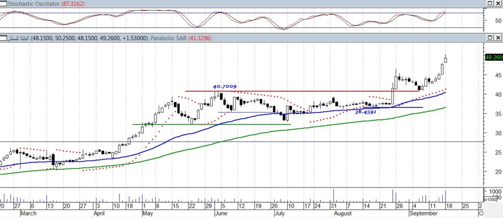 واشار رأفت فى تحليله الفني لآداء السهم، أما السيناريو البديل هو كسر مستويات الدعم الرئيسية عند 46 جنيه لأسفل وذلك على المدى القصير، أما على المدى المتوسط هو كسر مستويات 44 جنيه لأسفل ليتحول الاتجاه من صاعد الى هابط على المدى اقصير والمتوسط.