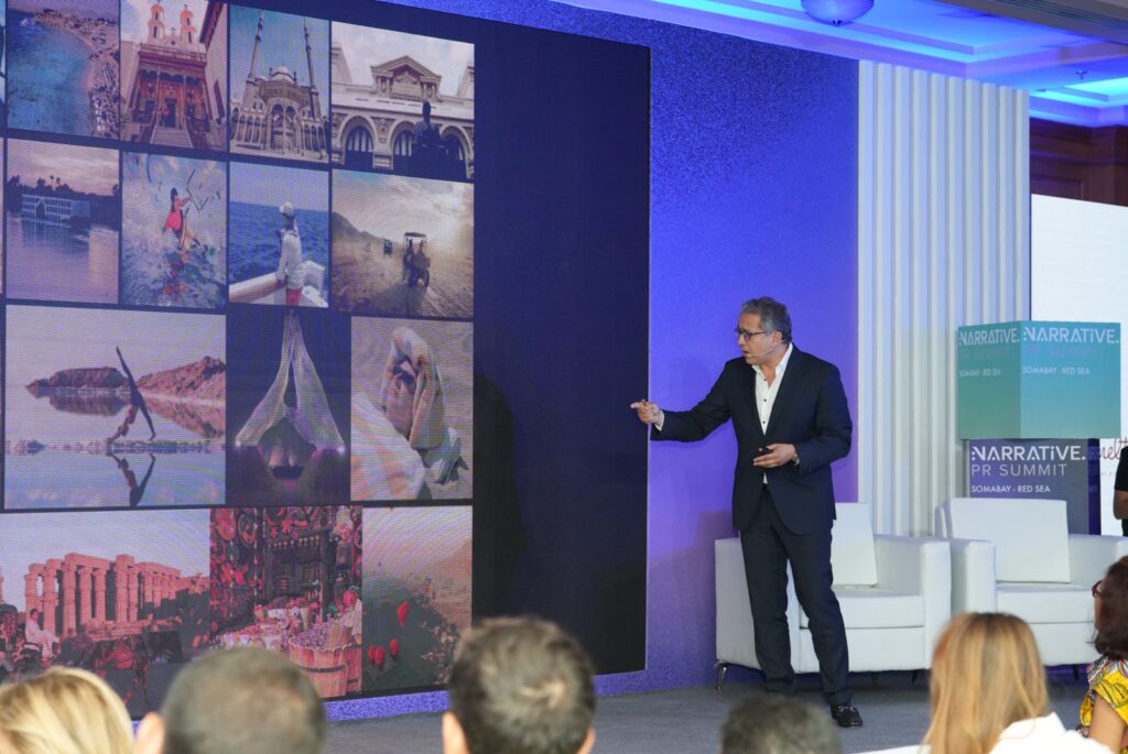 جاء ذلك خلال الكلمة التي ألقاها بعنوان “التراث الثقافي المصري” في مؤتمر قمة صوت مصر Narrative Summit 2023، أول منتدى دولي للعلاقات العامة في مصر، التي انطلقت اليوم الإثنين في منطقة سوما باي على ساحل البحر الأحمر، تحت عنوان Egypt Forever Forward، وسط مشاركة نخبة كبيرة من الخبراء، والمتخصصين المحليين والدوليين، لطرح الرؤى والأفكار البناءة التي تسهم في بناء الهوية الوطنية، وذلك تحت رعاية وزارة السياحة، والهيئة المصرية العامة للتنشيط السياحي ومحافظة البحر الأحمر، وبالشراكة مع غرفة التجارة الأمريكية، إلى جانب هيئة الأمم المتحدة للمرأة UN Women.