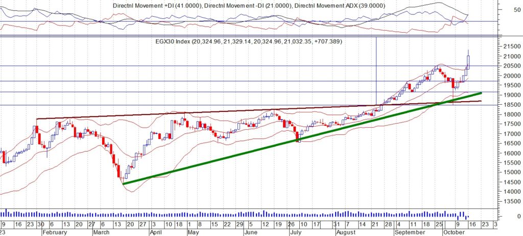 قال حازم عثمان رئيس قسم البحوث الفنية فى شركة “أونست” لتداول الاوراق المالية فى تحليله الفني لمؤشر “ايجي اكس30″، ان المؤشر الرئيسي للبورصه المصريه (EGX30) اغلق امس عند مستوى 21032 نقطة ولاول مرة في تاريخه واستطاع المؤشر اختراق مستوى المقاومة الهام عند 20500 وتحقيق مستويات جديدة ويعتبر مستوى 22000 – 23000 هو مستهدف المؤشر العام في الاجل المتوسط ننصح باستثمار الفرصة السانحة ويجب الالتزام بنظام حماية الارباح ووقف الخسارة السريع في حال حدوث اي تقلبات بسبب الظروف الحالية وتعتبر المنطقة 20500 هي حاجز الامان للمضارب والمستثمر لا يجب اختراقها لاسفل تحت اي ضغوط بيعية لمواصلة الاتجاه العام الصاعد .
