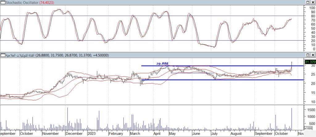 قال مصطفى رأفت ceta&cfte رئيس قسم التحليل الفنى بشركة ميراج لتداول الأوراق المالية فى تحليله الفني لسهم “القناة للتوكيلات الملاحية”، لاتزال القوى الشرائية هى المسيطرة على السهم على المدى القصير والمتوسط ماأدى الى تحرك السهم فى اتجاه صاعد ليكون المستهدف الأول عند مستوى 34 جنيه على المدى القصير وعلى المدى المتوسط عند مستويات 38 جنيه.