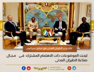 وخلال اللقاء، بحثا الجانبان أوجه التنسيق والتعاون الفعال في كافة الموضوعات ذات الاهتمام المشترك والتي جاء من بينها مناقشة إمكانية تحديث بنود مذكرة التفاهم الموقعة بين البلدين لتسيير رحلات جويه ورحلات شحن جوى بين مصر وسيراليون ، بالإضافة إلى دراسة تفعيل اتفاقية ثنائية في مجال التدريب مع الأكاديمية المصرية لعلوم الطيران بهدف تدريب الأشقاء الأفارقة على أحدث النظم والبرامج التدريبية المتطورة في مختلف تخصصات الطيران المدني.