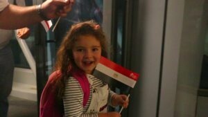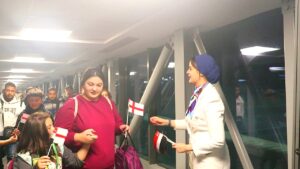 وقد قامت سلطات المطار باستقبال الطائرة بتقليد رش المياه وهو الإجراء الدولي المتبع بوصول أولى الرحلات الجويه، وقام فريق من العلاقات العامة بالمطار باستقبال الركاب ترحيباً بوصولهم إلى مصر وتوفير كافه التسهيلات اللازمه لانهاء إجراءات وصولهم.