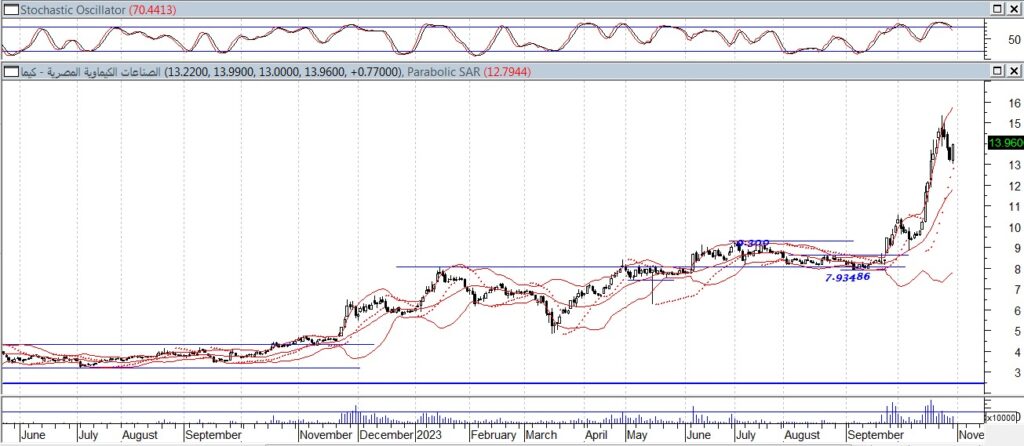 وننصح المستثمر قصيرومتوسط الأجل بإستغلال الحركات الهابطة فى الشراء ليكون المستهدف الأول على المدى القصير حول مستويات 14.80 جنيه وعلى المدى المتوسط حول مستويات 15.80 جنيه