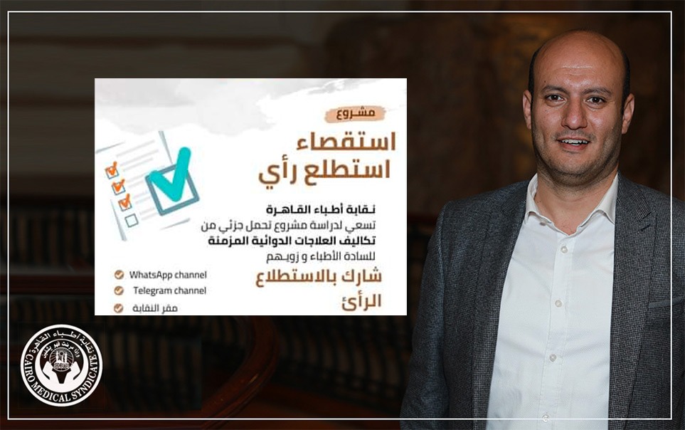أطلقت نقابة أطباء القاهرة استطلاع لرأى الأطباء للبدء في تنفيذ مشروع متكامل لدعم وتوصيل الأدوية المزمنة للأطباء الأعضاء وأسرهم.