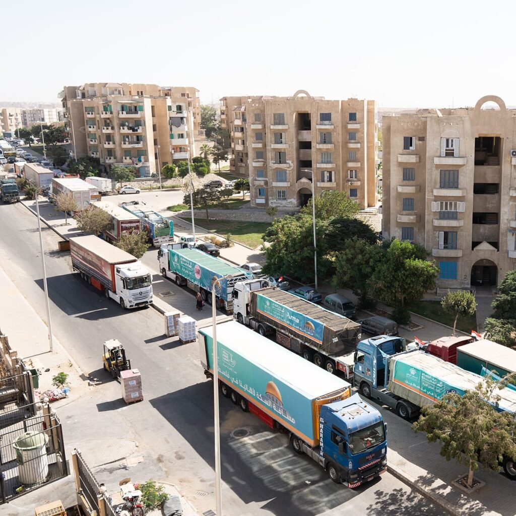 كان بنك الطعام المصري قد أعلن رفع حالة التأهب والاستعداد القصوى من خلال الجمعيات المتعاونة معه والمتطوعين لنجدة الأشقاء الفلسطينيين، تنفيذا لتوجهات الدولة المصرية تحت مظلة التحالف الوطني للعمل الأهلي التنموي، وموقفها الثابت والداعم للقضية الفلسطينية، وقام بإرسال القافلة الأولى، والتي تضمنت 41 حافلة تحتوي على 50 ألف كرتونة من المواد الغذائية بما يعادل 500 طن، من خلال تجهيز كراتين المواد الغذائية التي تكفي لمدة أسبوعين لأسرة مكونة من 5 أفراد، وذلك ضمن المحور الاستراتيجي الحماية برنامج الاغاثة، الذي يعد من أهم وأقوى برامج بنك الطعام، الذي يهدف لرفع المعاناة عن المتضررين في الأزمات.