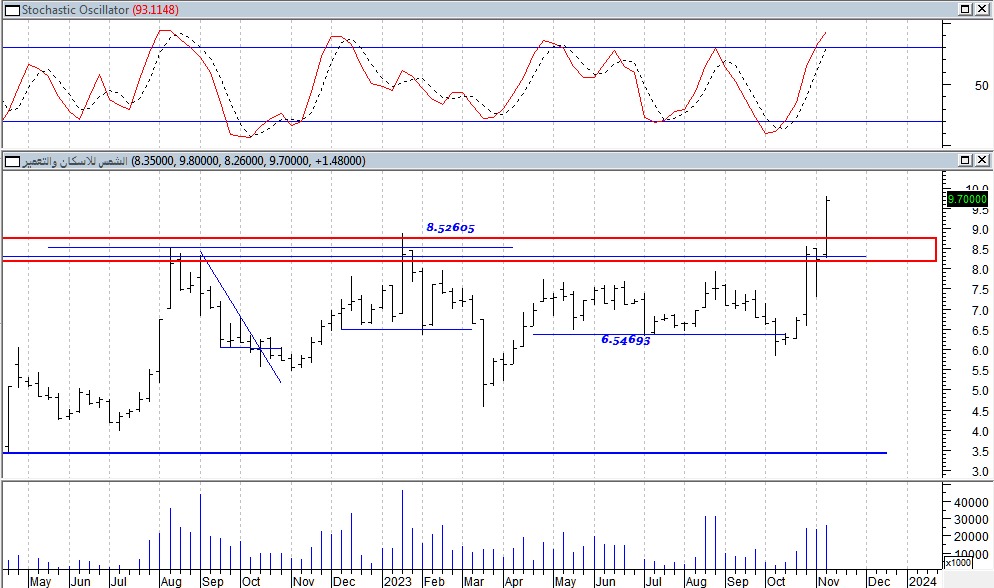 أما السيناريو البديل فى حالة كسر مستويات الدعم 8.50 لأسفل فيتحول اتجاه السهم من صاعد الى عرضى وبالتالى عودة التوازن بين القوى الشرائية والبيعية