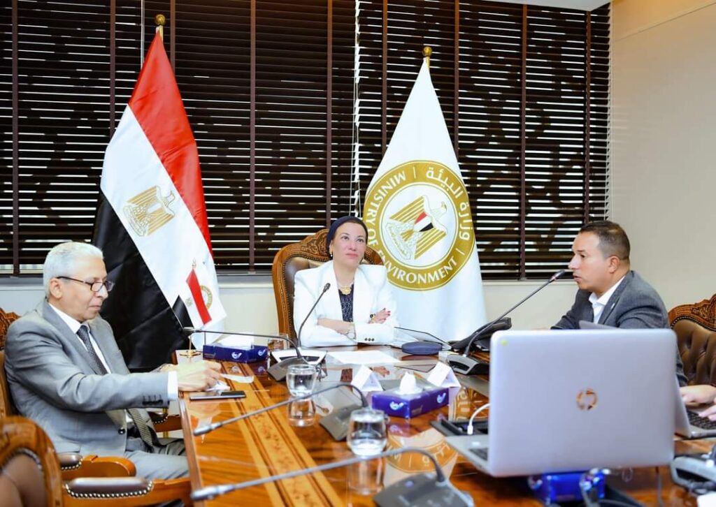 عقدت الدكتورة ياسمين فؤاد وزيرة البيئة إجتماعًا عبر خاصية فيديو كونفرانس مع الدكتور أحمد الأنصارى محافظ الفيوم، فى إطار سلسلة اللقاءات والاجتماعات الدورية للجنة الوزارية المشكلة بقرار رئيس مجلس الوزراء برئاسة وزيرة البيئة، وتنفيذاً لتكليفات الرئيس عبد الفتاح السيسى رئيس الجمهورية، لمتابعة تنفيذ مشروعات إعادة التوازن البيئى لبحيرة قارون، وذلك بحضور السيد الاستاذ الدكتور صلاح مصيلحي رئيس مجلس ادارة جهاز تنمية البحيرات والثروة السمكية، والدكتور عيد الراجحي مسئول ملف نوعية المياه والبحيرات بالوزارة.