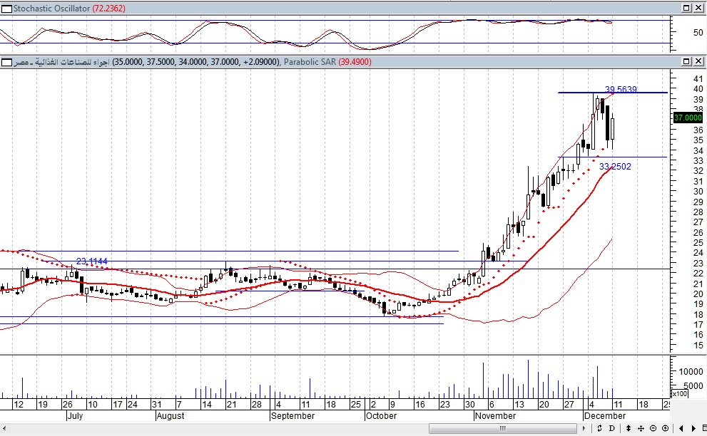 أما السيناريو البديل ففى حالة كسر مستوى 34 جنيه لأسفل على المدى القصير وكسر مستوى 31.50 جنيه لأسفل يتحول اتجاه السهم الى هابط .
