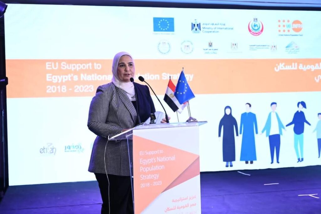 شهدت السيدة نيفين القباج وزيرة التضامن الاجتماعي حفل ختام مشروع تعزيز استراتيجية مصر القومية للسكان بدعم من الاتحاد الأوروبي، وذلك بحضور الدكتور خالد عبد الغفار وزير الصحة والسكان، والسفير كريستيان برجر رئيس وفد الاتحاد الأوروبي لدى مصر، والسيدة فريدريكا مايير ممثلة صندوق الأمم المتحدة للسكان في مصر، والدكتور طارق توفيق نائب وزير الصحة والسكان للسكان، والمهندسة نيفين عثمان، الأمين العام للمجلس القومي للطفولة والامومة وممثلي وزارات التخطيط والتنمية الاقتصادية والشباب والرياضة والتربية والتعليم والتعليم الفني والتعاون الدولي.