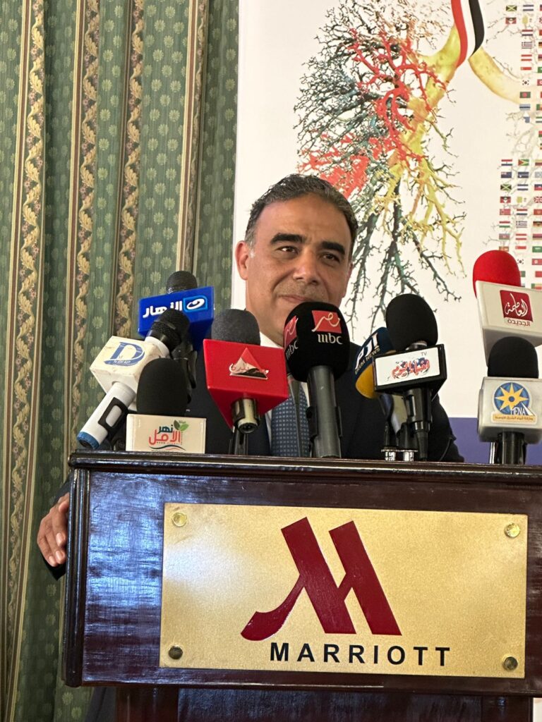 خلال المؤتمر الصحفي للإعلان عن المؤتمر الدولي السادس عشر لأورام الثدي والنساء والعلاج المناعي للأورام قال أن هذا العام يدعم المؤتمر مشاركة 15 جمعية علمية عالمية وعلى رأسها الجمعية الأمريكية للأورام، والجمعية الأوروبية لأورام النساء، والجمعية الأوروبية للعلاج الإشعاعي والجمعية الأوروبية لأورام الثدي، وبمشاركة أكثر من 70 دولة بالعالم من بينها الولايات المتحدة الأمريكية، وكندا، ودول من أمريكا اللاتينية وأوروبا وآسيا والشرق الأوسط وأفريقيا وأستراليا.. لافتا الى انه يقام على هامش المؤتمر اجتماع بين منظمة الصحة العالمية والمبادرة الرئاسية لصحة المرأة بحضور مدير الوكالة الدولية للأبحاث والسرطان، ومديرة قسم الأبحاث في الوكالة الدولية للطاقة الذرية والعديد من السفراء العرب والافارقة والأجانب لمناقشة الجديد في المبادرات لصحة المرأة في المنطقة.