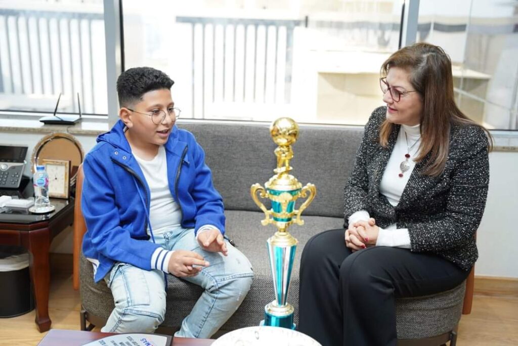 وخلال اللقاء بمارك وأسرته أكدت وزيرة التخطيط والتنمية الاقتصادية حرص الدولة المصرية على دعم المواهب والاستثمار في القدرات البشرية باعتبارها الثروة الحقيقية لمصر،