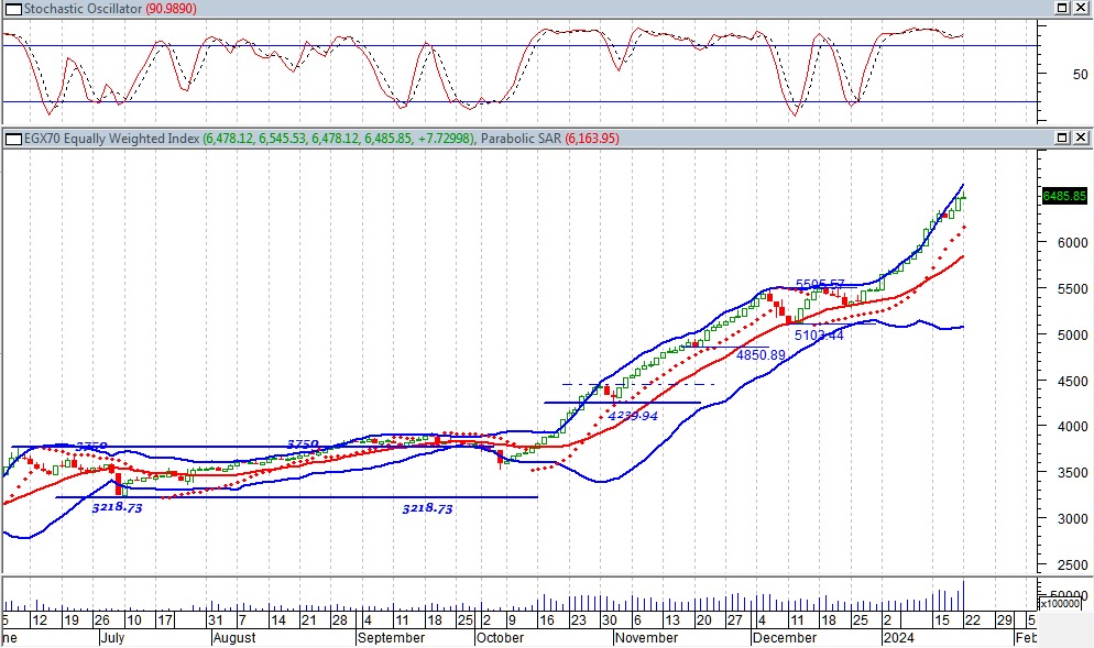 مازالت القوى الشرائية هى المسيطرة على أدائه ماأدى الى تحركة فى اتجاه صاعد على المدى القصير والمتوسط ليكون المستهدف الاول على المدى القصير حول مستويات 6750 نقطة وعلى المدى المتوسط حول مستويات 7200 نقطة