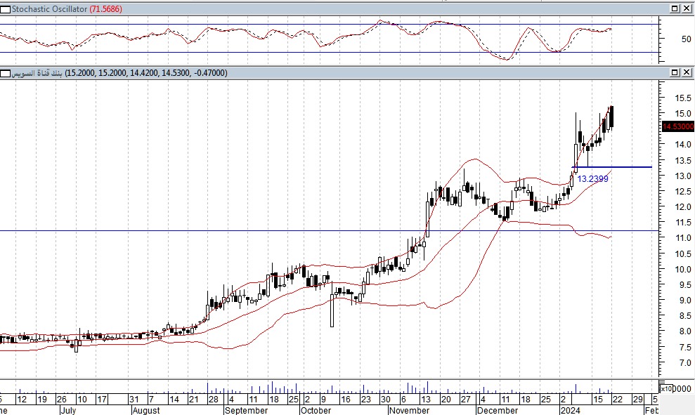 مازالت القوى الشرائية هى المسيطرة على أداء السهم ماأدى الى تحركه فى اتجاه صاعد على المدى القصير والمتوسط ليكون المستهدف الاول حول مستويات 16 جنيه على المدى القصير وعلى المدى المتوسط حول مستويات 17.50 جنيه وننصح بإستغلال الحركات الهابطة فى الشراء