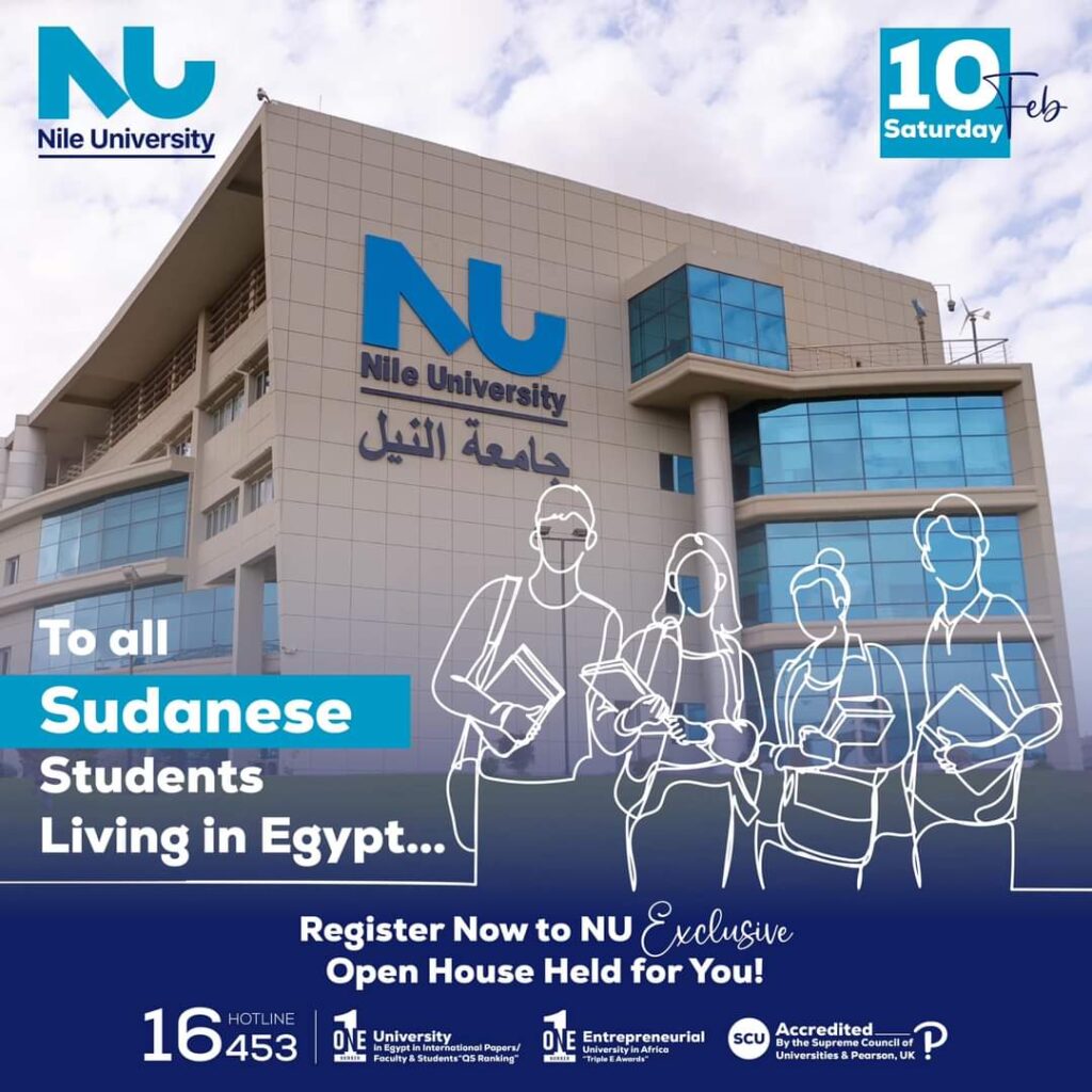 أعلنت جامعة النيل الأهلية برئاسة الدكتور وائل عقل، عن فتح أبواب الجامعة يوم السبت المقبل الموافق 10 فبراير الجاري لجميع الطلاب السودانيين في مصر، للتعرف على الجامعة وكلياتها وبرامجها البحثية ومراكزها التعليمية وأوجه النشاط الطلابي بها، وإجراءات القبول عند الرغبة في الالتحاق بها.