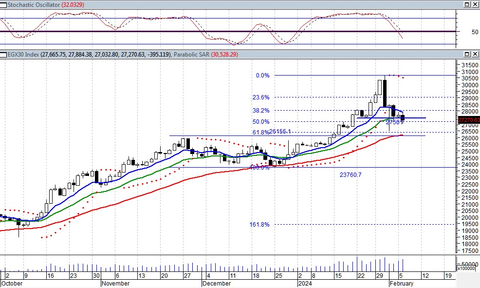 وننصح المستثمرقصير ومتوسط الاجل بإستغلال الحركات الهابطة فى الشراء ليكون المستهدف الاول على المدى القصير حول مستويات 29000 نقطة وعلى المدى المتوسط حول مستويات 32000نقطة