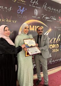 وجاء هذا التكريم خلال حفل ملكة جمال العرب الذي أقيم في قاعة فندق الشيراتون في القاهرة بتاريخ 10/2/2024
