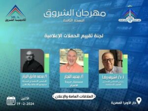 كذلك خبراء العلاقات العامة والإعلان ، هيثم البيطار ، مدير إدارة الإخراج بشبكة قنوات cbc ، وإنجي منيب رئيس مجلس الإدارة والعضو المنتدب لجلوبال ستارز للنشر والاستشارات، وهيثم نبيل ، الإعلامي وخبير التسويق ، والدكتور محمد أشرف رضا ، رئيس مجلس إدارة شركة AR PUPLICATION للدعاية والإعلان ، ومحمد النجار ، خبير التسويق ومستشار رئيس مجلس إدارة مؤسسة الأهرام ، ومحمد صادق الرزاز ، رئيس مجلس إدارة وكالة “ستوديو” للإعلان ، والدكتور حازم درع ، رئيس مجلس إدارة شركة لوك للدعاية والإعلان ، والدكتورة شيرين زقلمة ، رئيس مجلس إدارة شركة رادا للدعاية والإعلان ، والكاتب الصحفي ، رفعت فياض ، مدير تحرير جريدة أخبار اليوم ، والكاتب الصحفي والإعلامي ، محمد الغيطي .