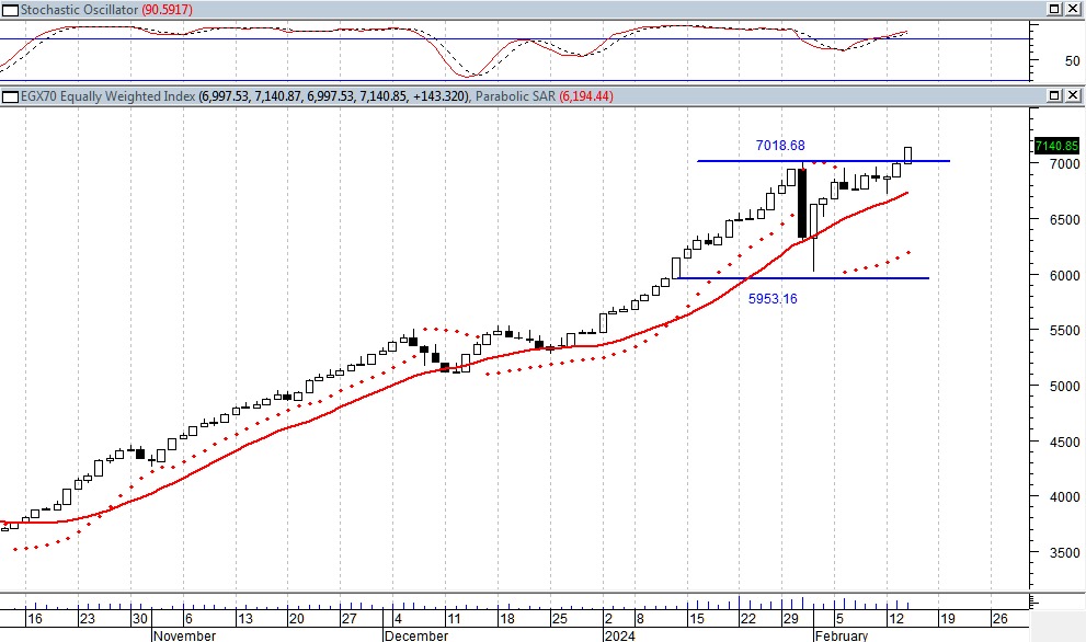 نجد أن مازالت القوى الشرائية هى المسيطره على المؤشر ماأدى الى تحركه فى اتجاه صاعد على المدى القصير والمتوسط ليكون المستهدف الاول على المدى القصير حول مستويات 7300 نقطة والمستهدف الثانى حول مستويات 7800 نقطة