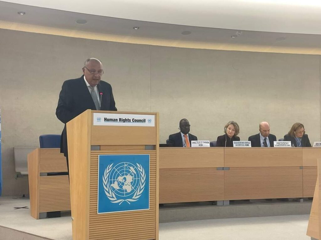 هذا، واختتم وزير الخارجية بيان مصر مستعرضاً التقدم المحرز على المستوى الوطني لتعزيز مناخ حقوق الانسان، ومؤكداً على أن مصر تسير بخطى ثابتة نحو تعزيز وحماية حقوق الإنسان بمفهومها الشامل، والوفاء بالتزاماتها الدولية والتزاماتها تجاه مواطنيها، تنفيذاً للاستراتيجية الوطنية لحقوق الإنسان، من خلال تعزيز البنية التشريعية والمؤسسية ومواصلة المبادرات الرامية لتعزيز الحقوق والحريات وتكثيف برامج التدريب ونشر الوعي بحقوق الإنسان. كما نوه بحرص مصر على التفاعل مع الآليات الإقليمية والدولية وتقديم تقاريرها الدورية، وكذا التعاون مع المفوضية السامية لحقوق الإنسان كأداة هامة لدعم جهود الدول وفقاً لأولوياتها.