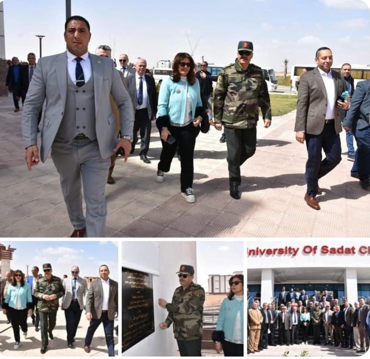 تفقد اللواء مهندس هيثم علي زكي مساعد الوزير للمشروعات القوميه نيابة عن الدكتور محمد أيمن عاشور وزير التعليم العالي والبحث العلمى وبرافقة الدكتورة شادن معاويه رئيس جامعه مدينة السادات وأعضاء مجلس الجامعة بأفتتاح وتفقد 9 مشروعات كبري بجامعة مدينة السادات .
