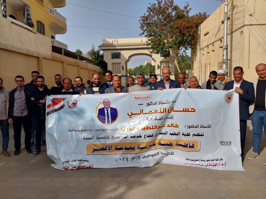 صرح الدكتور حسان النعماني رئيس جامعة سوهاج ان قطاع خدمة المجتمع وتنمية البيئة بكلية الطب البشري نظم قافلة طبية مجانية لخدمة أهالي مدينة الاقصر، وذلك بمقر ساحة فضيلة الشيخ احمد الطيب شيخ الازهر الشريف بمنطقة القرنة بالبر الغربى.