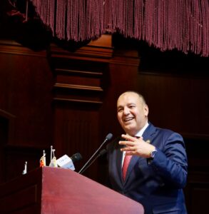 وتحدث الدكتور مصطفى عز ، نائباً عن وزير الشباب والرياضة ، الدكتور أشرف صبحي ، مشيراً إلي دور الشباب في بناء المستقبل ، ومشيداً بالدور الحيوي الذي يلعبه الإعلام في تشكيل الوعي الإقليمي والدولي ، خاصةً مع الصراعات الراهنة ، ومؤكداً أن الحكومة المصرية ، بقيادة الرئيس عبدالفتاح السيسي ، تضع في أولوياتها تعزيز السلم والأمن المجتمعي، ومكافحة العنصرية والكراهية والتمييز ، معتبراً أن هذه الجهود تسهم في تحقيق التنمية المستدامة والشاملة للمجتمع المصري .