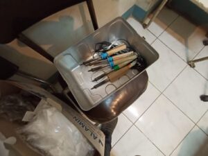 و تم ضبط عيادة جراحة لأحد الأطباء والذي تم التنبيه عليه بإزالة المخالفات واتباع اشتراطات السلامة ومكافحة العدوى ولكنه لم يقوم بتلافي الملاحظات فقامت اللجنة بالمرور عليه بعد صدور قرار غلق للمنشأة من مديرية الصحة بعد التأكد من وجود غرفة عمليات غير مرخصة بها سرير عمليات وبعض الأجهزة والسرنجات والمشارط وأدوات جراحية غير معقمة وملحق بها غرفة تعقيم غير مجهزة بها اوتوكلاف وفرن تعقيم و قامت اللجنة بتشميع العيادة بالشمع الاحمر وعمل المحاضر اللازمة لما تمثله من خطر علي المرضي المترددين عليها .